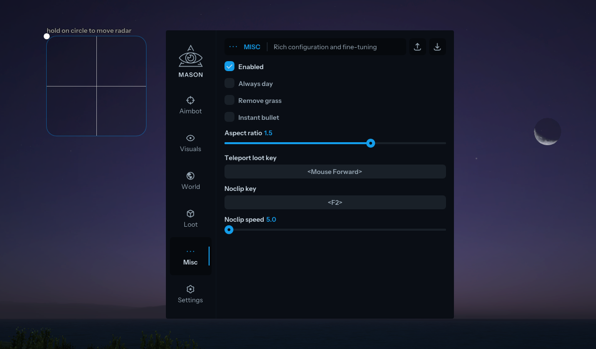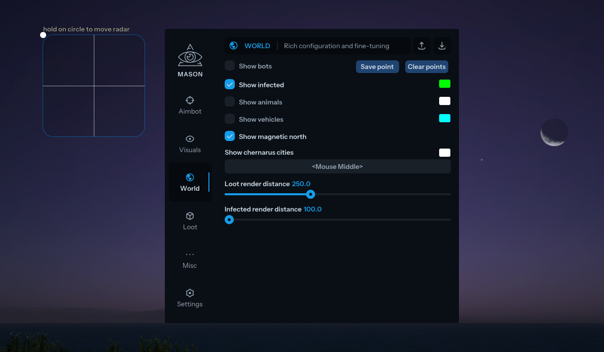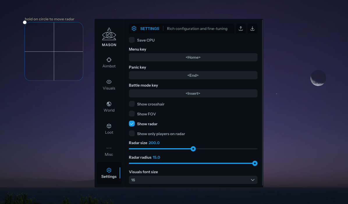- Panic Key / Экстренное отключение чита, по умолчанию установлена клавиша "Delete"