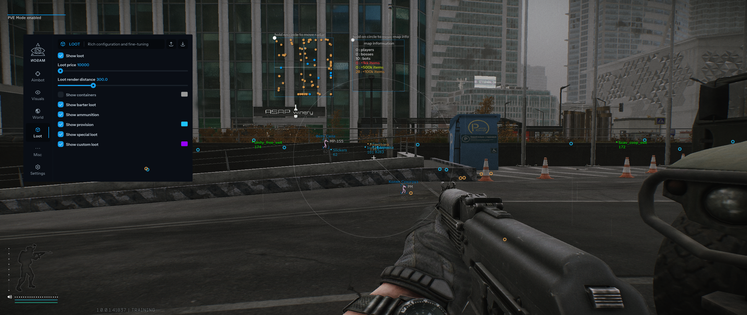 - Show custom loot / Отображать пользовательские предметы, кастомный фильтр предметов