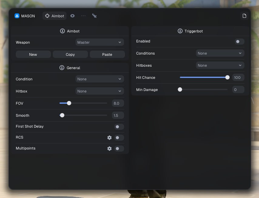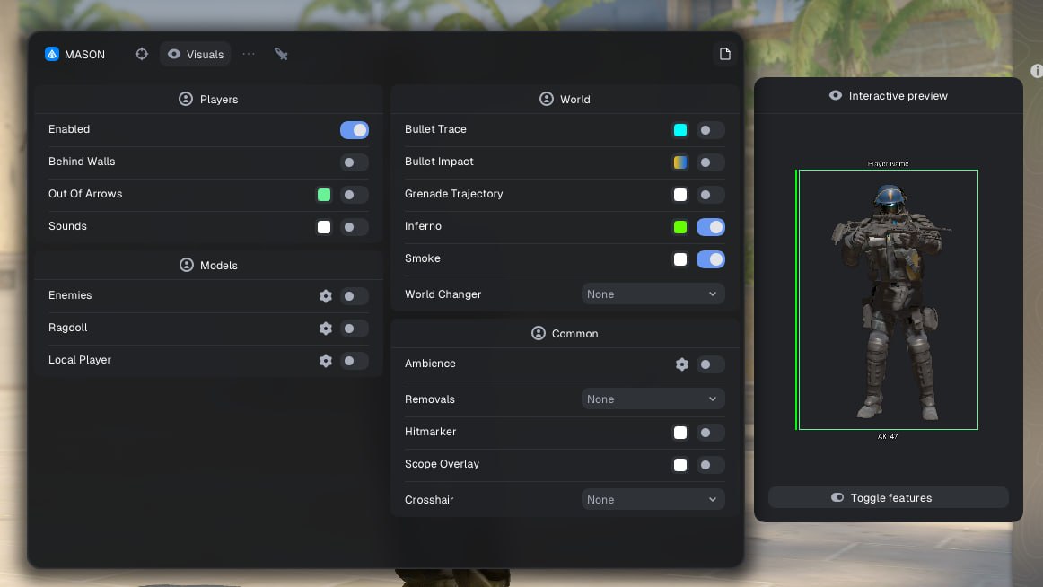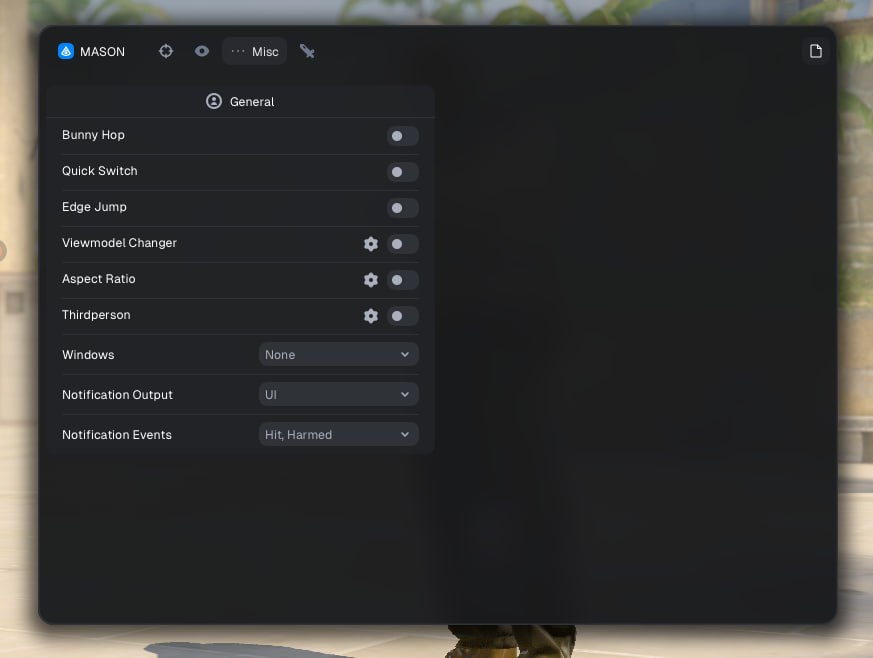 - Windows (Keybind, Spectators, Bomb Timer, Watermark)/Окна (Привязка клавиш, Наблюдатели, Таймер бомбы, Водяной знак)